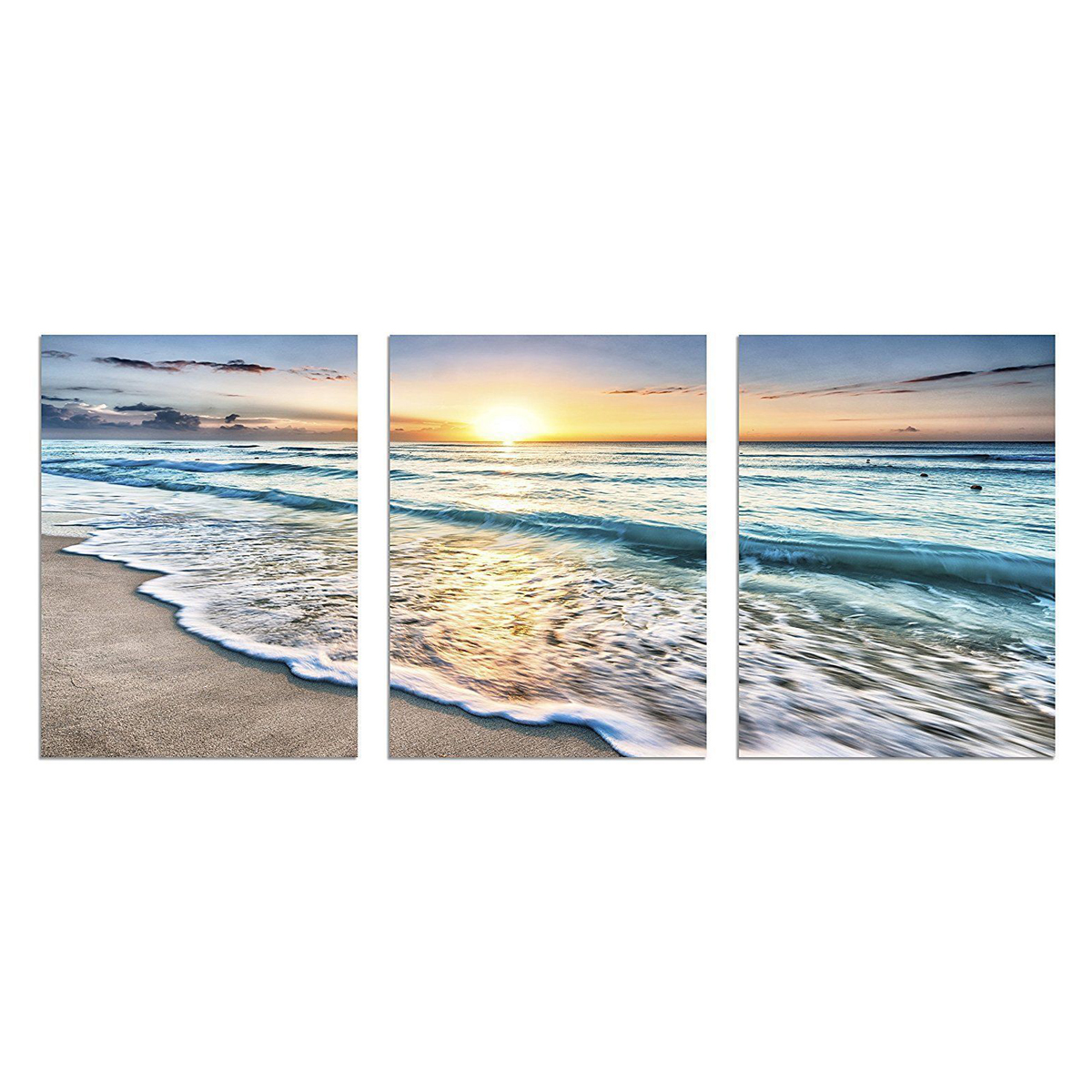 Beach Canvas Wall Art Sunset Sand Ocean Sea Wave 3 Panel Home Picture Decor